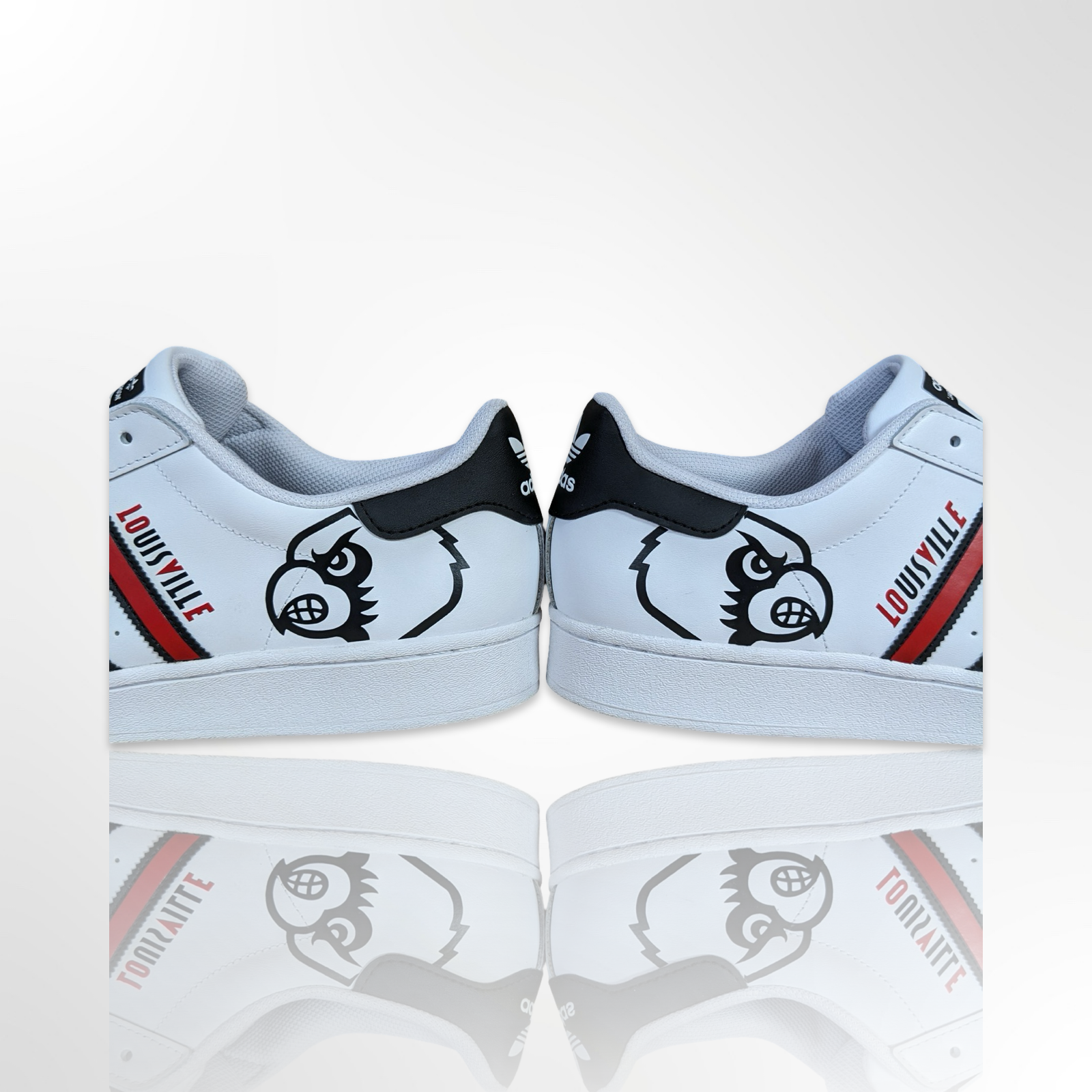 UofL University of Louisville White/Red/Black - "Louisville LOVE" Custom Shoes - Adidas Superstar - FREE SHIPPING